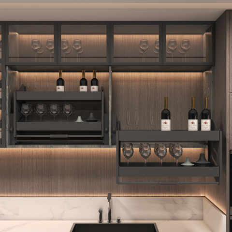 ملحقات مطبخ المجرة سلة رفع مزدوجة السحب لأسفل خزانة سلال درج درج زجاج