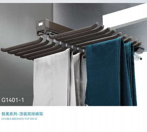 GALAXYダブルロウメタルプルアウトパンツラックトップマウントスライドアウトデザイン寝室ワードローブハードウェアメタルパンツハンガーラック付き